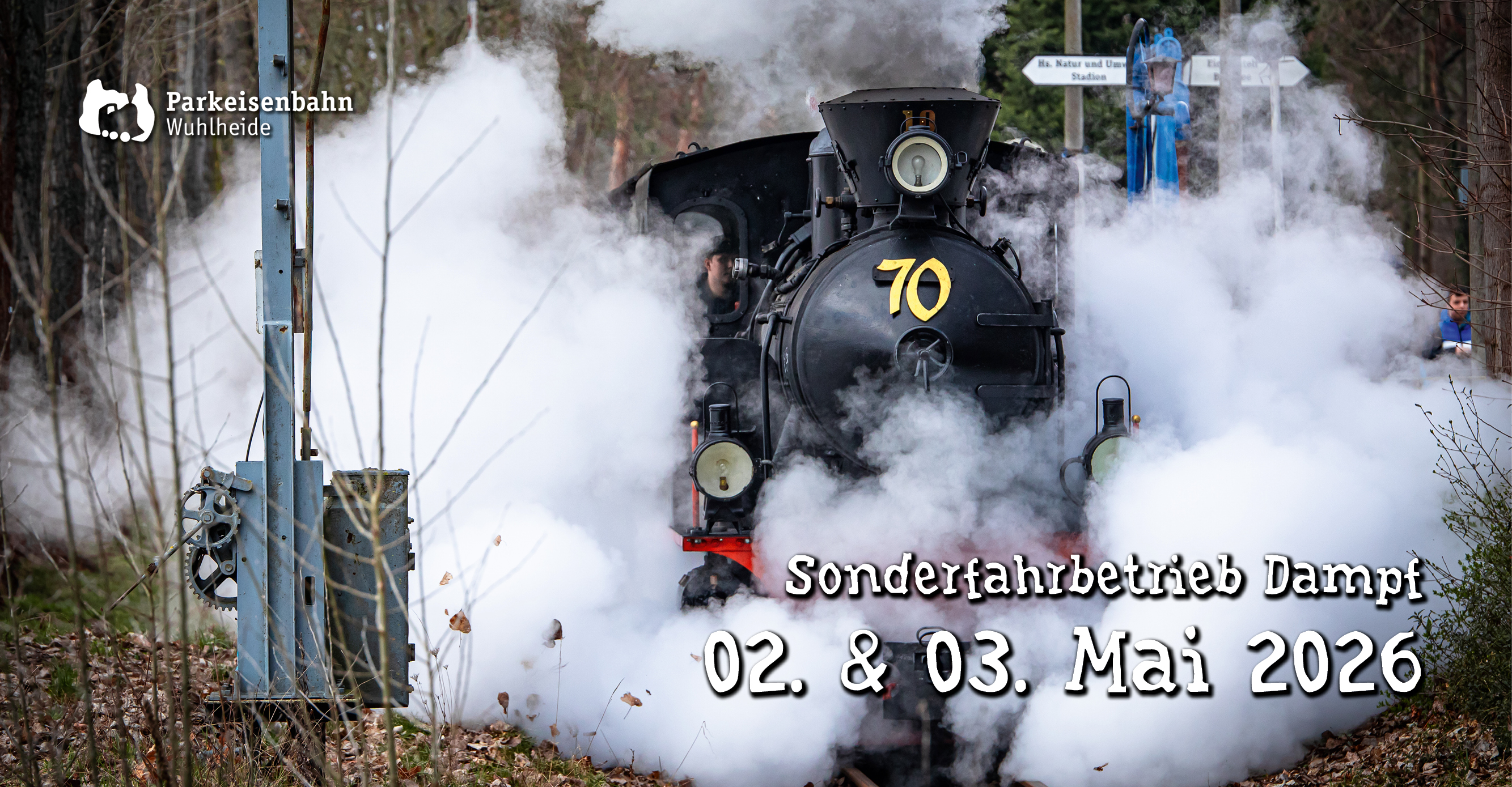 Zum Auftakt der Jubiläumswochenenden am 2. und 3. Mai heißt es für die Gäste: Mit Volldampf durch die Wuhlheide. An diesem Wochenende werden gleich zwei Dampfloks durch die Wuhlheide fahren: „Merapi“ und „Klaus“. Die beiden historischen Lokomotiven machen den Sonderfahrbetrieb zu einem besonderen Erlebnis für kleine und große Eisenbahnfreunde.